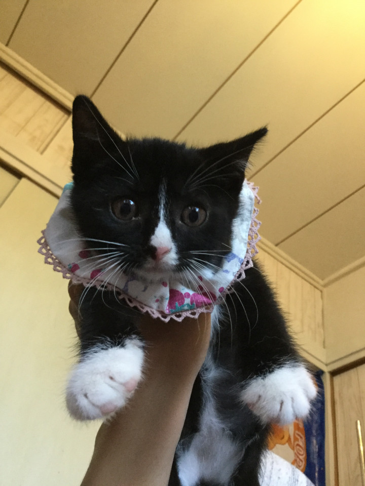しかし、こちらとしては、野良猫扱いで突然捕獲されていって貰いたくはないので、ハンチョウくんにはとりあえず首輪に連絡先を書いて付けて貰うことにしました。