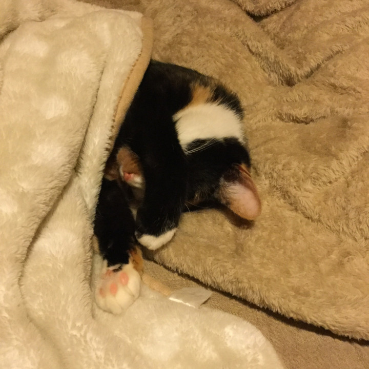 獣医さんに連れて行かれた夜、スネスネでお籠り中のはるです。