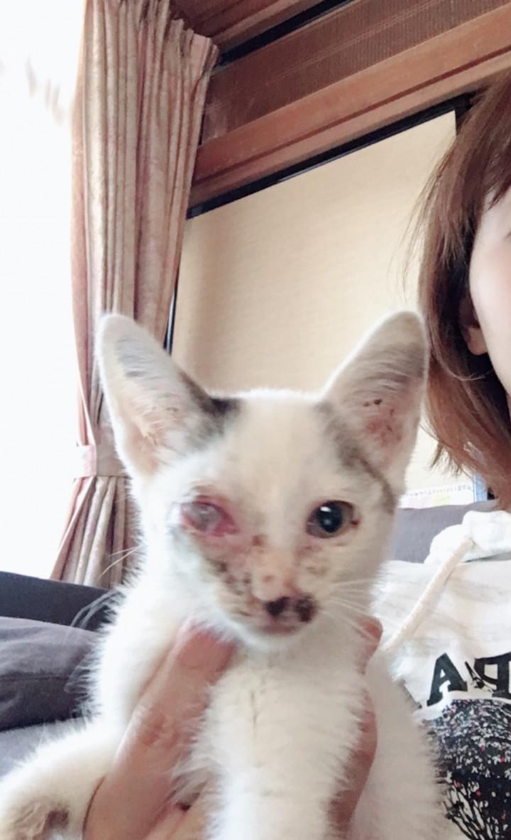 元気も食欲もあったけど、左目は酷く眼球が腫れていた。
