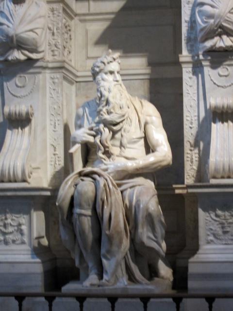 別の教会で見られる、ミケランジェロのモーゼ像(こちらもボケ気味)