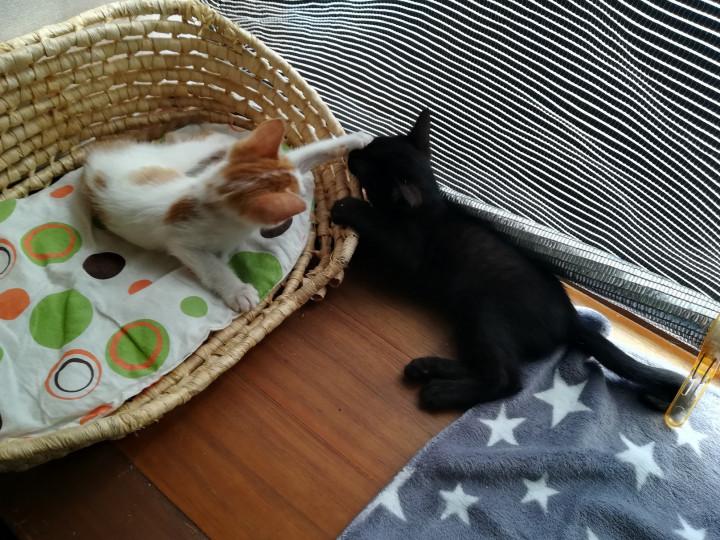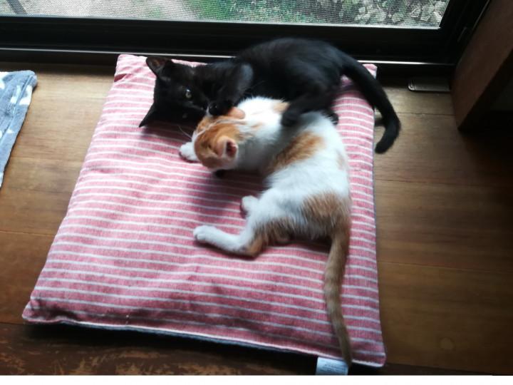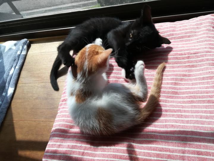 仲良くプロレスごっこにいそしむノワくん&ミミちゃんと暮らしたい方は里親募集ページを見てくださいね☆