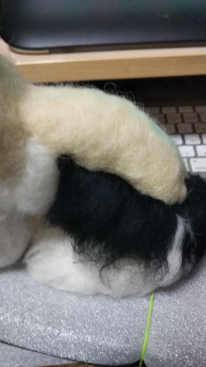 でも実は写真では見えてないですが、お腹あたりがまだハゲなので、そこにカットしたもさ毛をこれでもかというくらいもっふもふに植えていきますです。