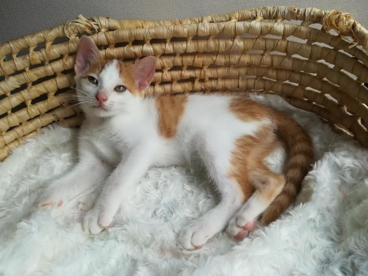 ミミはほとんどの部分が白い毛だから、お兄ちゃんとちょーっとだけだけ、おそろいってことになるんだよ。