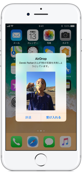 AirDrop を使えば、近くにあるほかの Apple 製デバイスと、写真、ビデオ、書類などをすばやく共有できます。