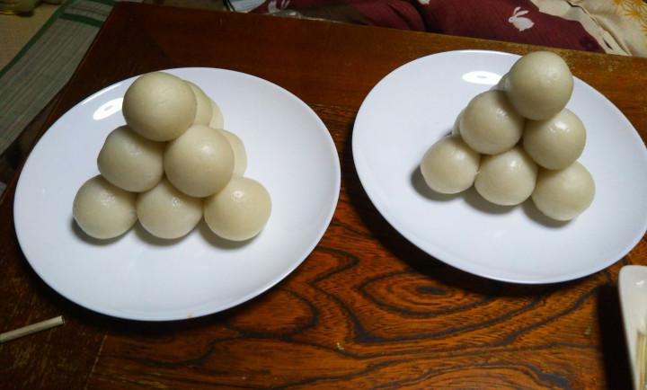 旦那が頑張って団子を作りました。私は丸めるサポート。