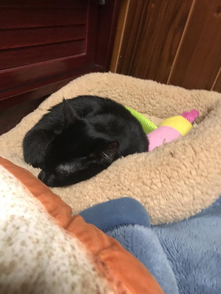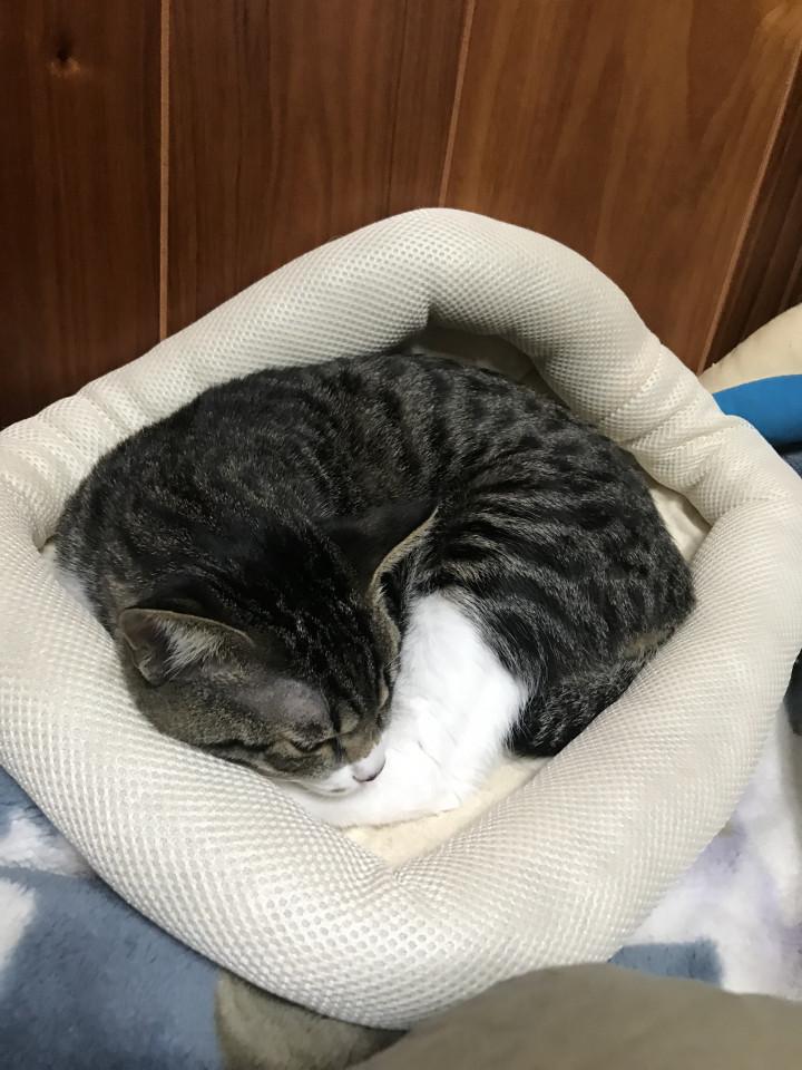猫ベッドは平らな場所において上げるよりも、壁に立てかけ気味にしたり布団を凸凹させてその上に置いたりした方が、ウケがいいなってことでした。