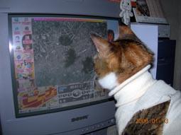 虫が動き回る映像をじっと見つめるちーちゃん。