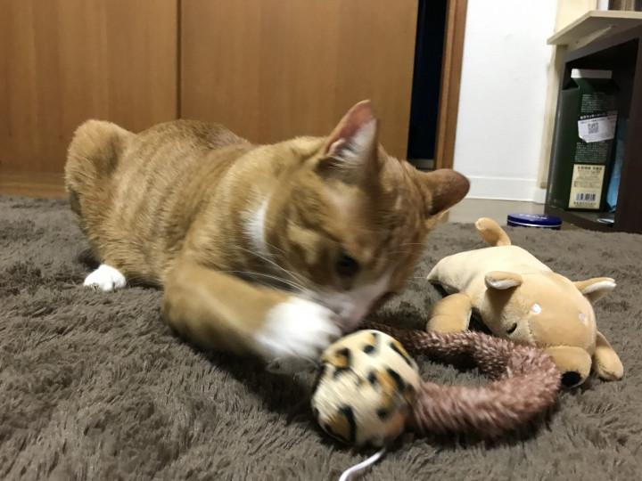 ヒョウ柄のボールに謎のシッポが付いてる所がいいのでしょう( ‐ω‐)b笑