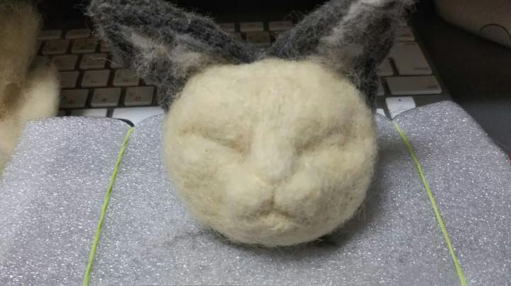 前回のしずくさんでの耳の作りにくさを考えて、耳の中の毛などはあらかじめ植えてから作ることにしたが、それよりも、耳の作り方がなんとも気に入らなくて何度か作り直しをした。