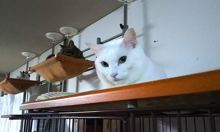 フィービィーが3段ケージの上に居るのって、1年ぶりくらいかも。