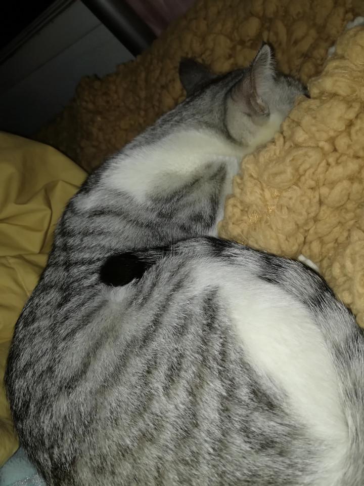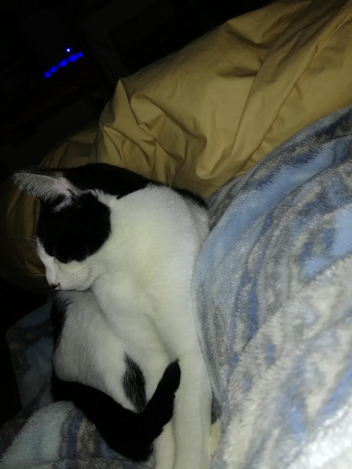 毛布の上で寝てらっしゃるので、掛け布団も使えず。