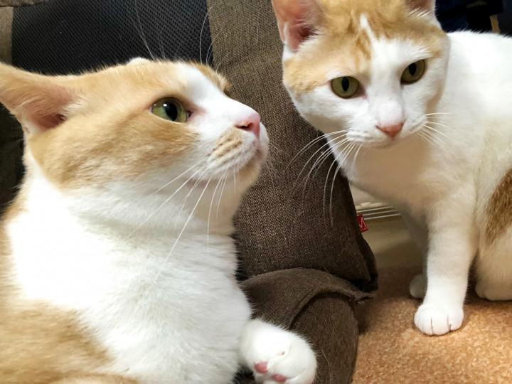 座椅子に座る飼い主の上に遠慮なく乗ってきて、