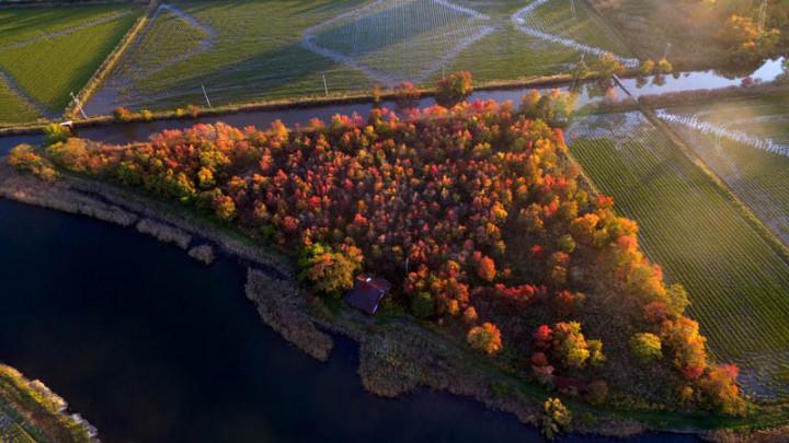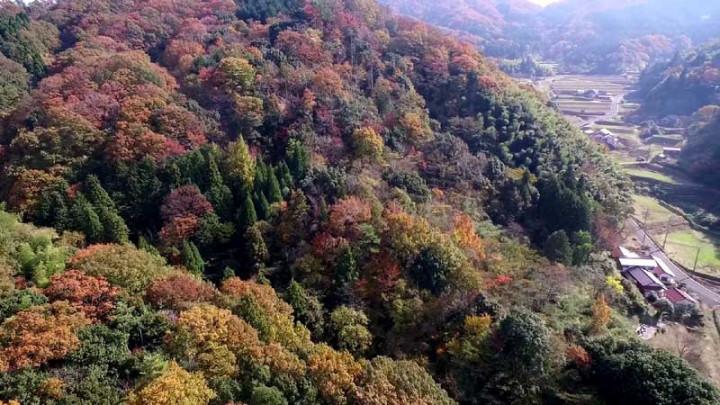 これまでと違って、今年はドローンを使って空から紅葉を鑑賞します。(空撮)