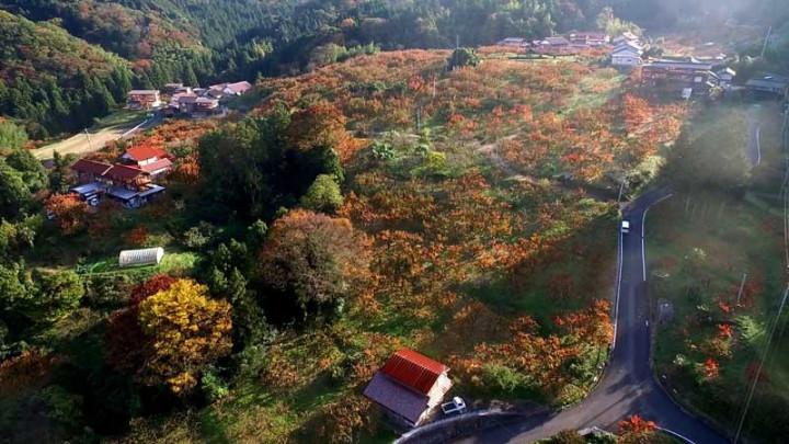 橙色に見えてる畑は、みんな柿畑なんですよ。