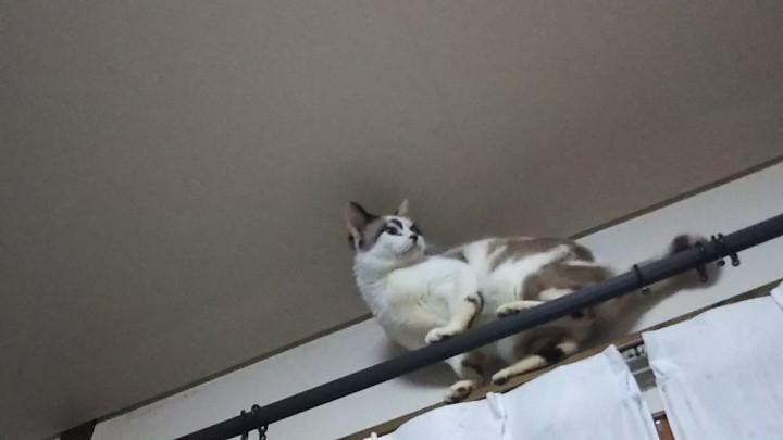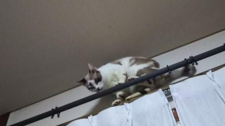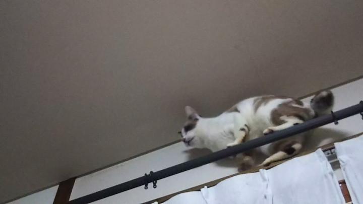 狭いカーテンレールで方向転換出来ず、困ったチカコ