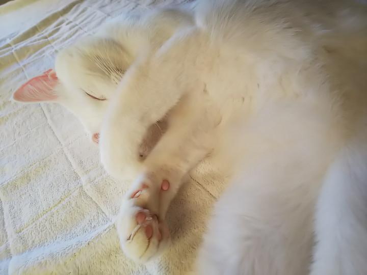 仕事中の夫に写真送ったら、「目の辺り、タケオの面影があるね」って。やっぱり猫さんも家族で似るんですね。離れてても似てるんだな~と思うと嬉しいです。