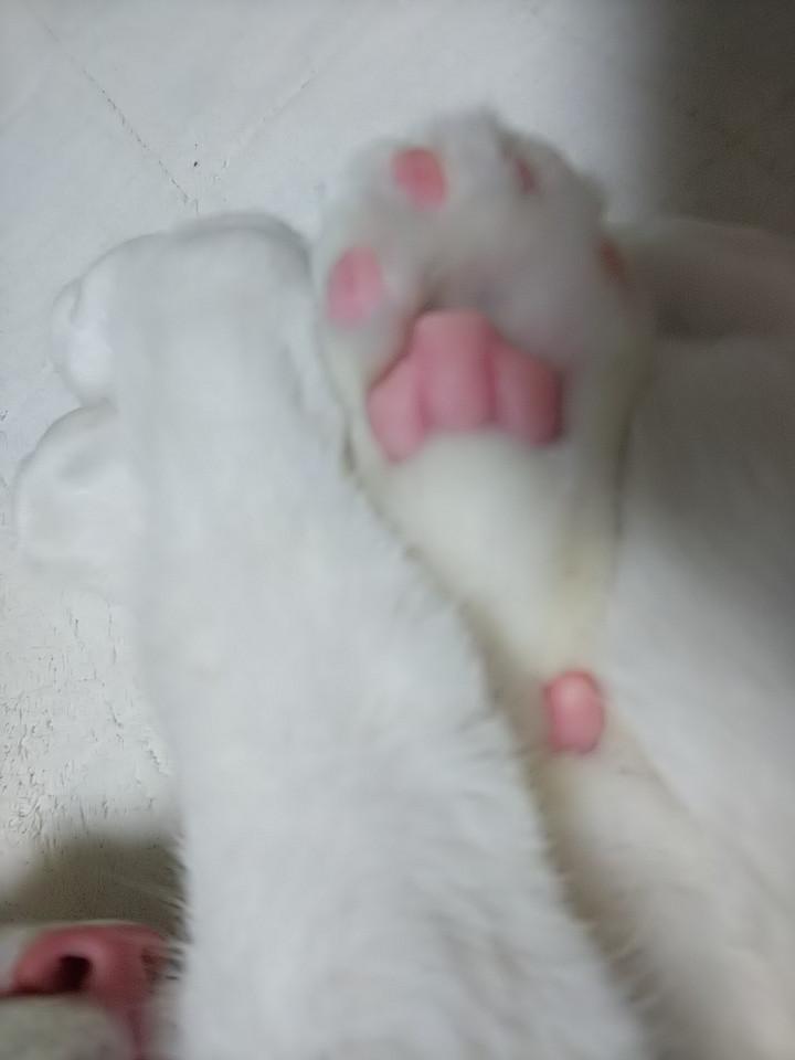 夫のLINEに送った写真。肉球を撮ったつもりなのに「俺は肉球より鼻の穴が気になってしょうがない」と(^_^;)。