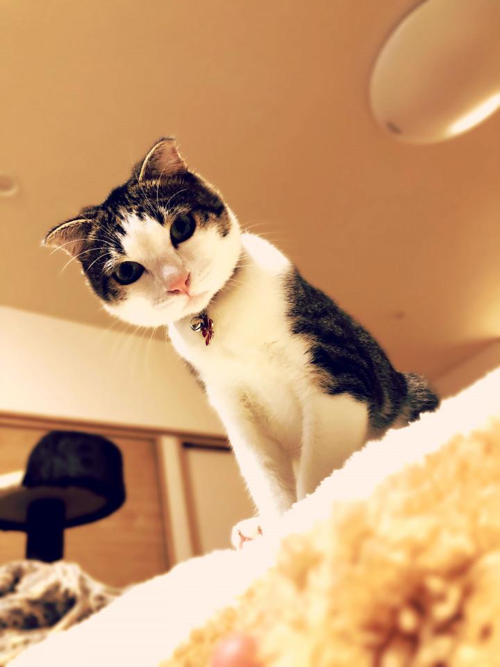いつもならソファーの上からネコジャラシを加えて落として来る笑笑