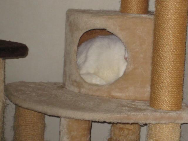 キャットタワー中央にあるお昼寝ボックスに先週、美々ちゃんが入っていたのでパチリ📷