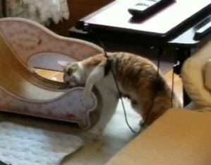 爪とぎ。お高い。(@_@)そのタイプは高いものだと2万ぐらいですって!!「さすがにそれは・・・」と妹。(当たり前だよ・・)でもランク落としても何千円。で、ぴーちゃん、爪とぎはジュータンで、高価な爪とぎはスリスリ用。