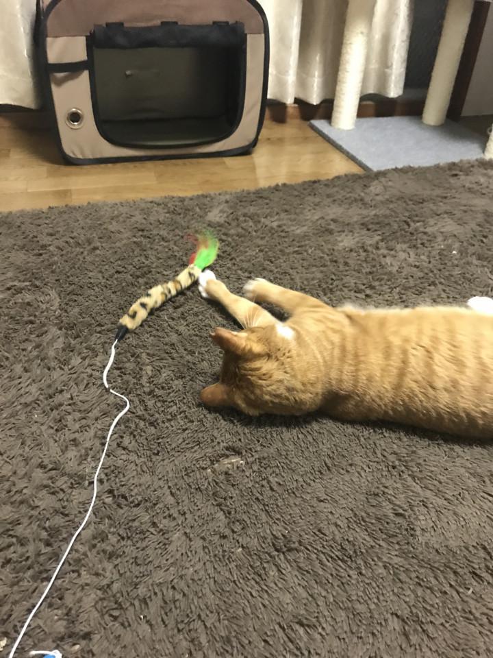 新しいじゃらしは今回もヒョウがらで( ‐ω‐)b笑