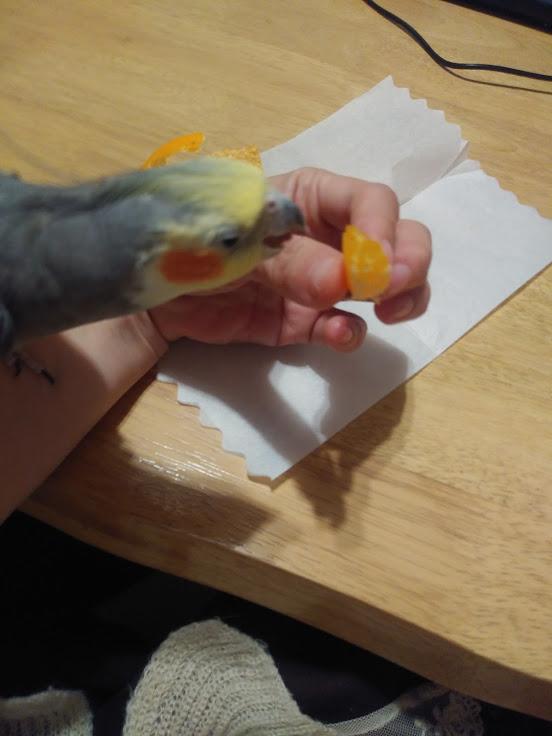 最近毎日食べているせいか、やっとみかんは怖くないとわかってきたようで、一粒ずつあげなくても食べるようになりました。