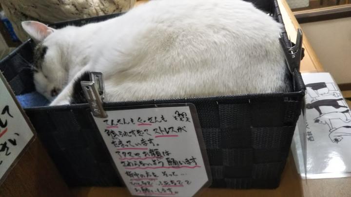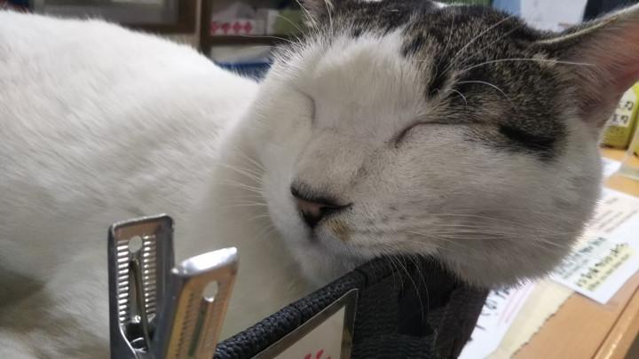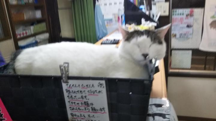 お客さんは皆心得たもので、看板猫さんたちが寝ている時はそっと受付をして、起こさないようにしています。