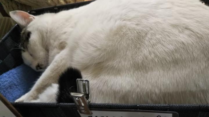 いつも番台に置かれたカゴの中で丸くなって眠っています。