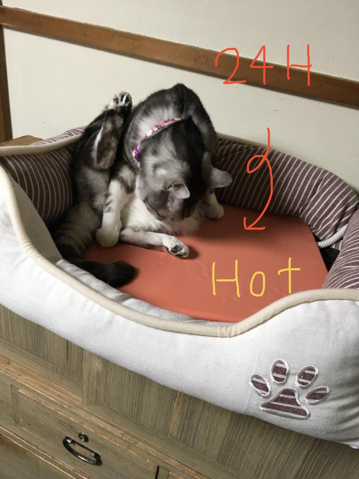 これは24時間付けっ放しです。なぜかフワフワが嫌いで毛布とか包ませても取ってしまう猫ドン😅