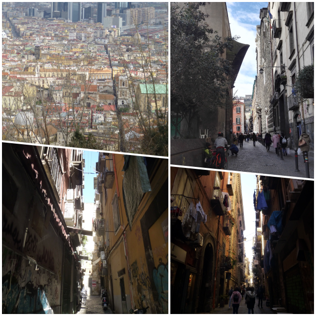 古い建物が立ち並び、車1台が通過できるほどの細い路地…ナポリの歴史的地区です。