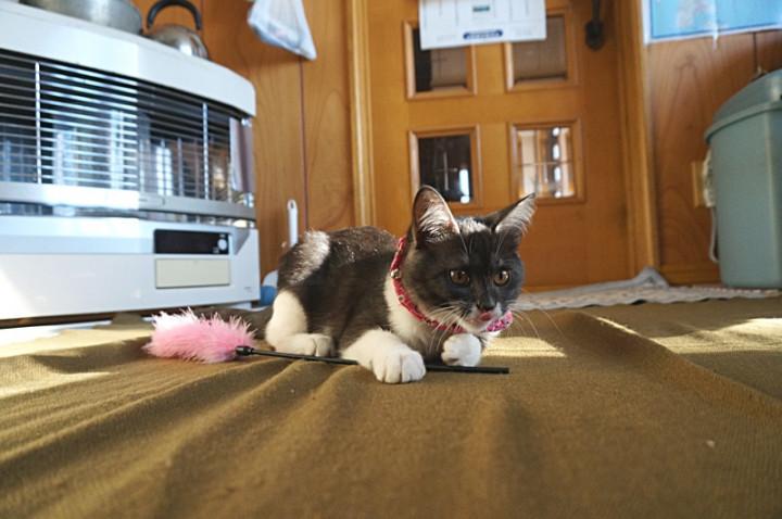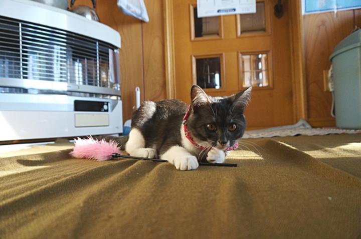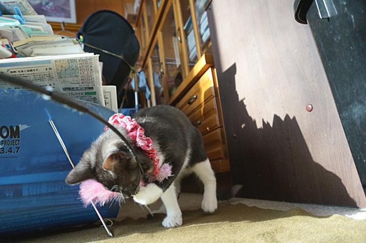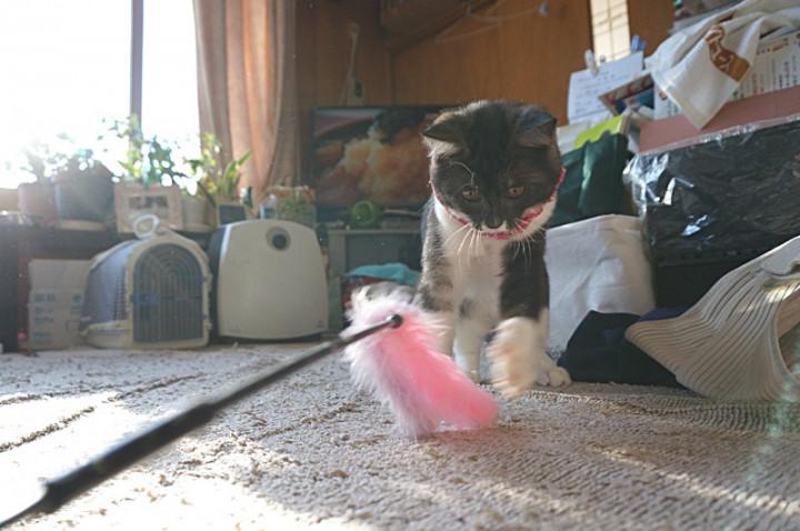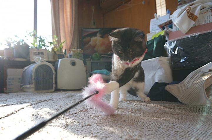 チャムりんの振り回す、ふわふわ毛っけの猫じゃらしに戯れる空。