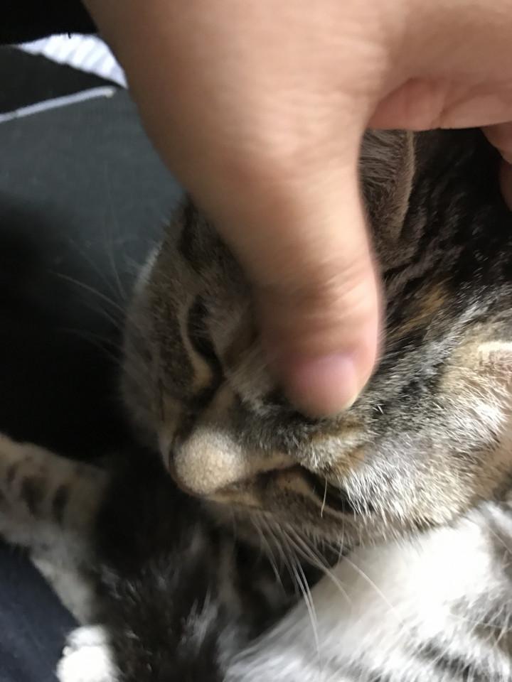 どこが気持ちいいんかぁ?ここか?ここがええのんかぁ?(と 言いつつ眉間をナデナデ、ぴおーねの性感帯のようです)