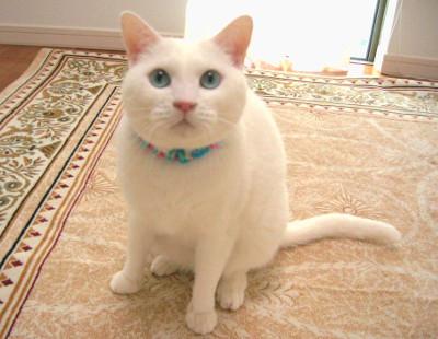 大福顔です。目がブルーなので、首輪もブルーが似合うと、
