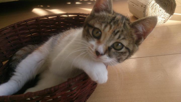 昨年末、保健所にミルクボランティアの登録に出向いたところ、たまたまその2,3日前に収容されたという生後2ヶ月ほどの三毛猫と対面。その時期に乳飲み子はいないということと、過去にミルクボランティアの経験がないということから、ひとまずこの三毛猫の人慣れを目的とした一時預かりをすることに。