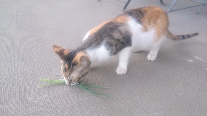使い古した土の入ったベランダの植木鉢になんとなく猫草の種を蒔いてほったらかしにしていたら、暖かくなってぐんぐん成長しこんな状態に。