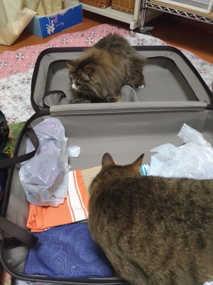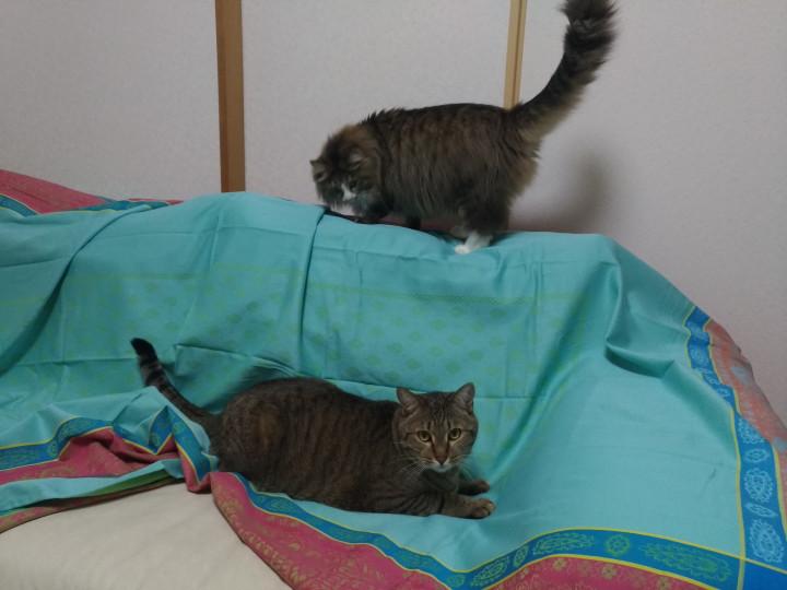 シッターさんにお願いするのは1年弱ぐらい振り。覚えてるかなぁ??という事で数日前に来てもらったら、、、、尻尾ピーンな2ニャン(笑)。