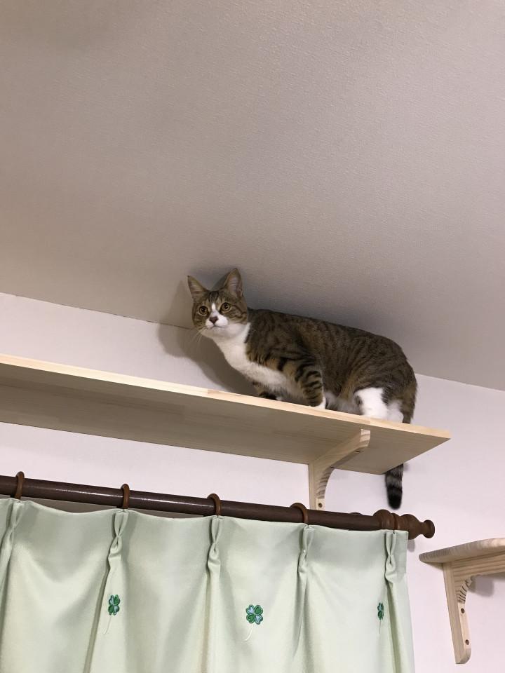 メル•マリはキャットタワーから私達の作業に興味深々😸