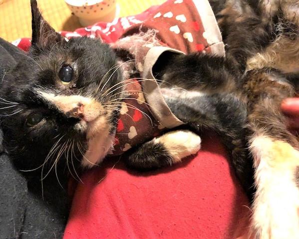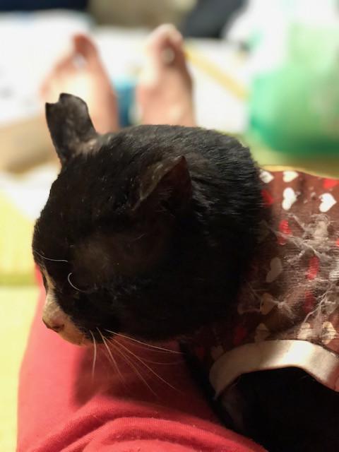まだかゆいところがあるようで、けが防止にチュビファーストと交代制で、こなつが着ていた洋服を着せています。