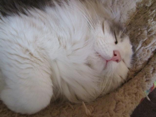 早速捕まえておちりを洗うが、長毛だから乾かね~~~!
