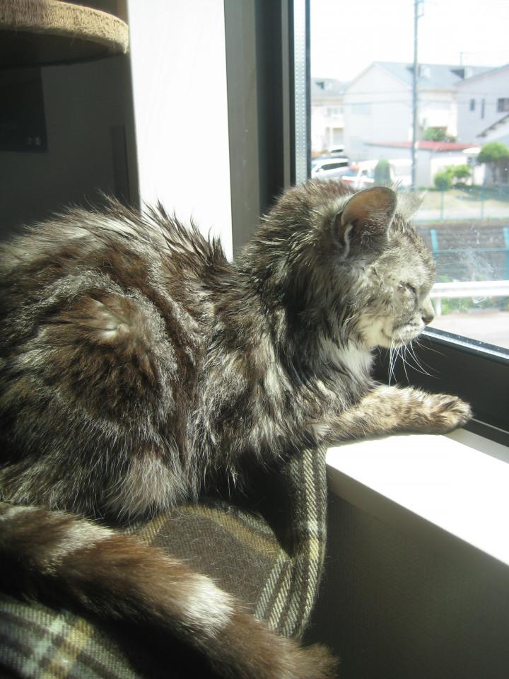 お陽さまが、ネオを乾かすのを心配して待つ。