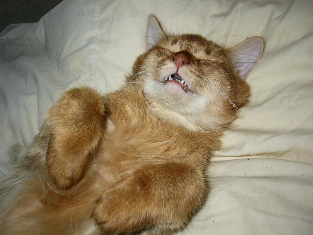 そして、扇風機の風が気持ち良いのか、ラッコのように体を仰向けにして伸びました。(w