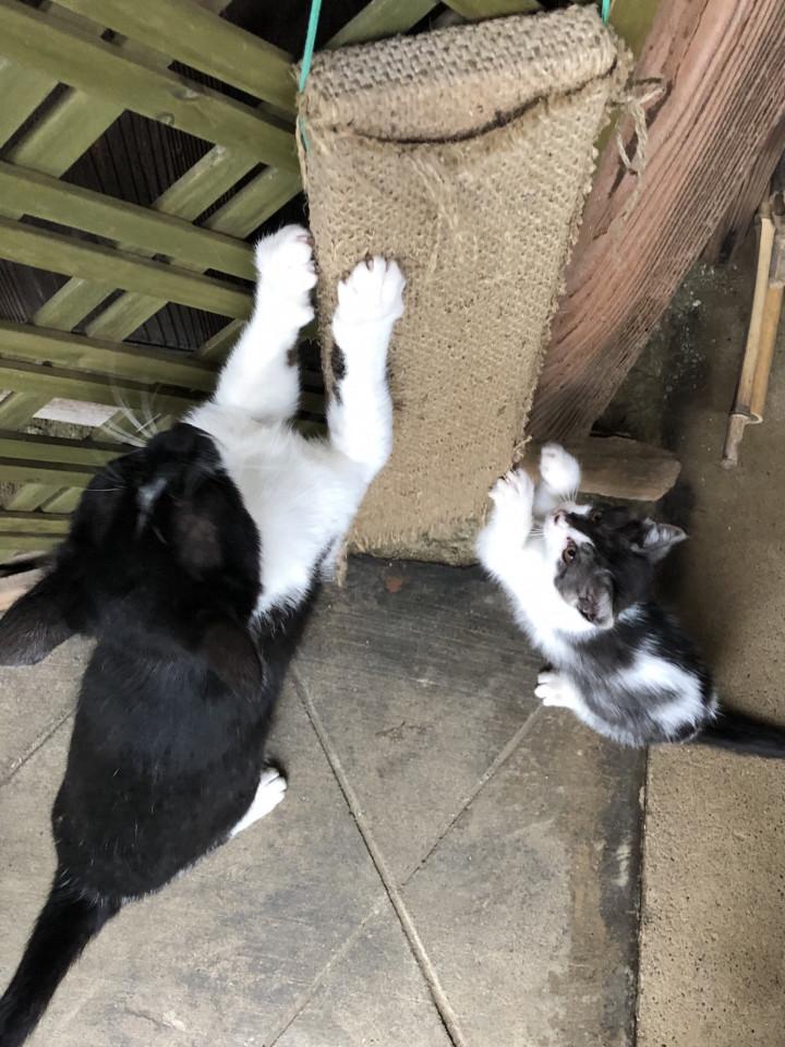 仲よく爪を研ぐ親子
