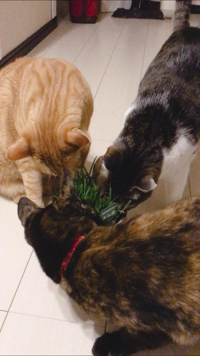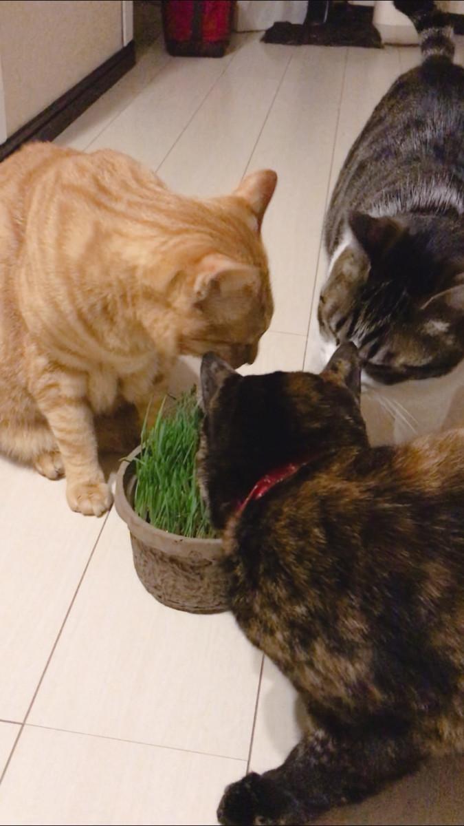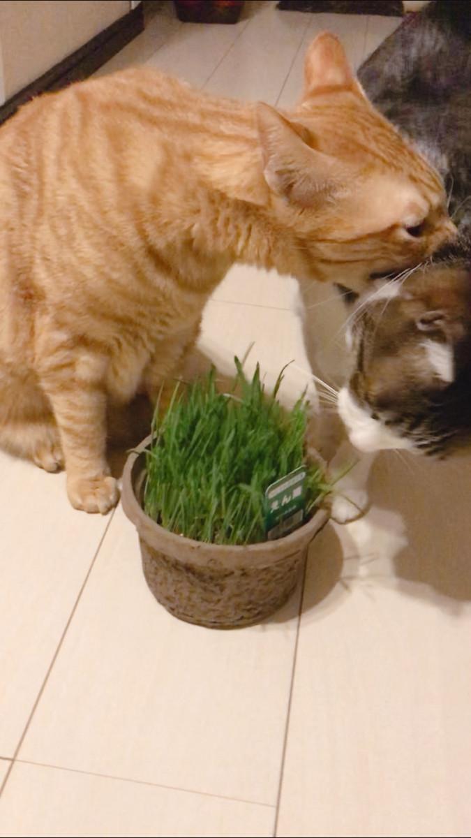 みんな好きだよね〜猫草( ◠‿◠ )♪
