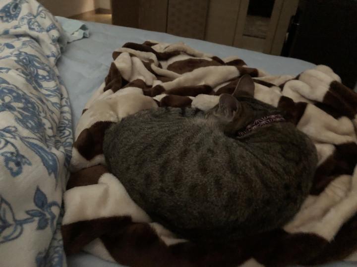 朝仕事終わって帰ると、朝は龍馬君は別の場所なので、その隙に幸ちゃんが寝に来ました❤️