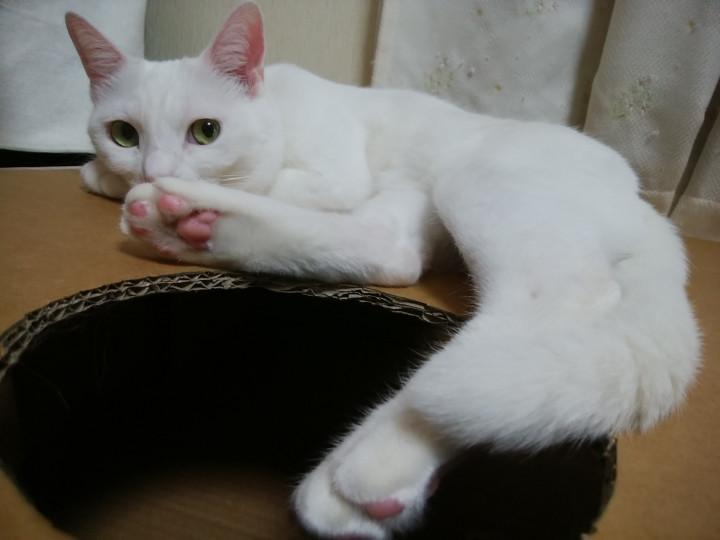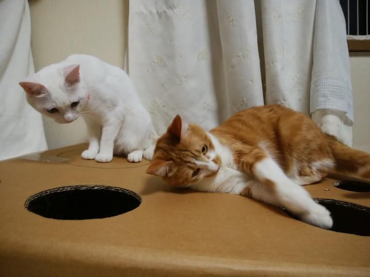 初めの内は箱の上で寛いでいた2にゃんですが・・・