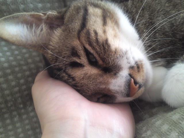毎日同じカリカリなのに 産まれて初めて貰う 美味しいご飯みたいな勢いで食べ、どこで眠っていてもお尻を叩くパンパンの音にダッシュで駆けつけて 脛にゴツンゴツンとスリスリしてくれました。