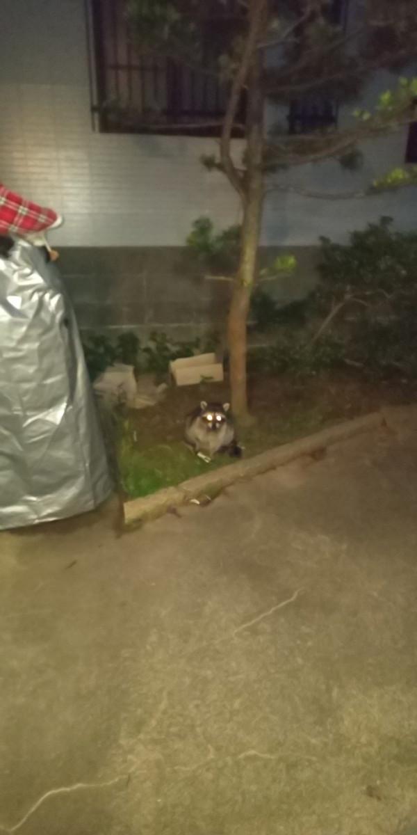 いや、確かに、以前アライグマを見かけたっては、近所の人から聞いてた。