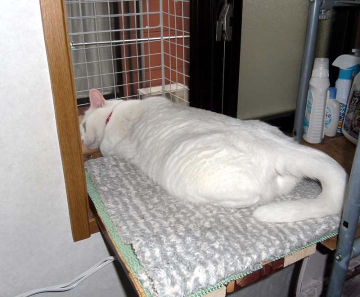 今日は暑いくらいでしたので、作業が終わって、部屋に入ってみると、セナちゃんが液体になりかけてました。