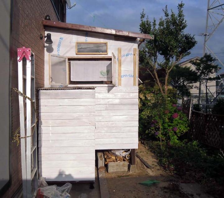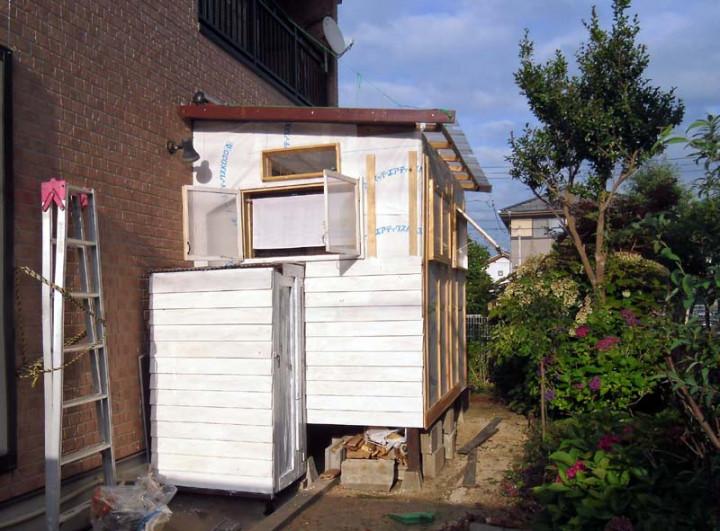 午前中は道具入れに手を入れてましたので、部屋の外壁を張るのに時間が足りませんでした。