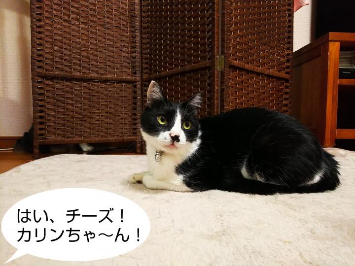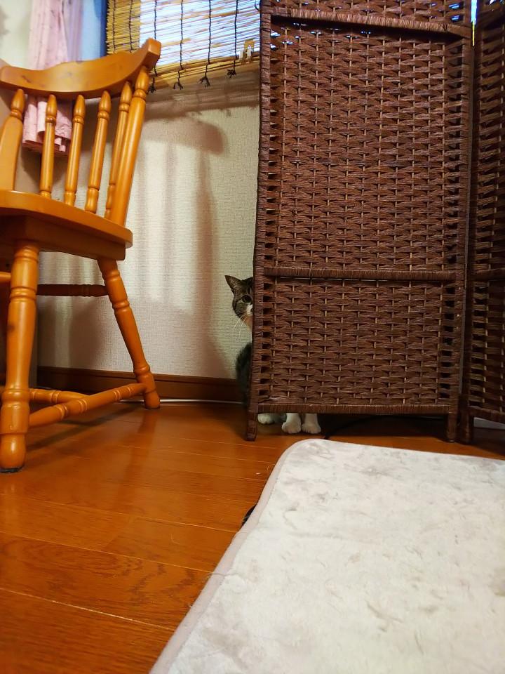 カリンがパーテーションの裏に逃げ込んでしまいました。